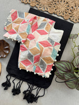 Black Khadi Cotton Saree With Embrodery Work Stitched Blouse